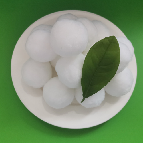 纖維球是由纖維絲扎結而成的,它與傳統的鋼性顆粒濾料相比具有彈性效果好,不上浮水面,空隙大,工作周期長,水頭損失小等優點。 纖維球有以下幾種特點: 1質輕、強度高,物理化學性能穩定,經久耐用。 2.隨水飄動的纖維絲,使填料之間空隙可變,不易被生物膜堵塞。 3.比表面積大,活性強,處理效果好。