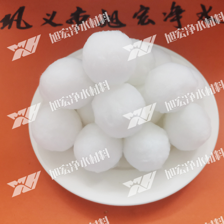 改性纖維球由改性纖維絲結扎而成。改性纖維絲的性能似羊毛,彈性較好,伸長20%時回彈率仍可保持65%,蓬松卷曲而柔軟,有合成羊毛之稱。纖維球彈性好,比表面積大,間隙率高,過濾速度可調。由于其良好的耐曬性,強度僅降低20%。